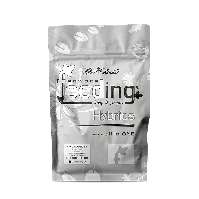 La alimentación de híbridos contiene menos nitrógeno amoniacal y mayores cantidades de magnesio, lo que resulta ventajoso para las variedades híbridas con un tiempo de floración de 8-10 semanas y las plantas cultivadas en sistemas hidropónicos. La mayor cantidad de magnesio y sulfato estimula la producción de aceites esenciales, terpenos y flavonoides.