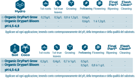 Erhältlich in zwei verschiedenen Formeln - Grow für das vegetative Wachstum und Bloom für die Blüte und Fruchtbildung - unterstützt Organic DryPart® die Pflanzen in jeder Phase ihrer Entwicklung: