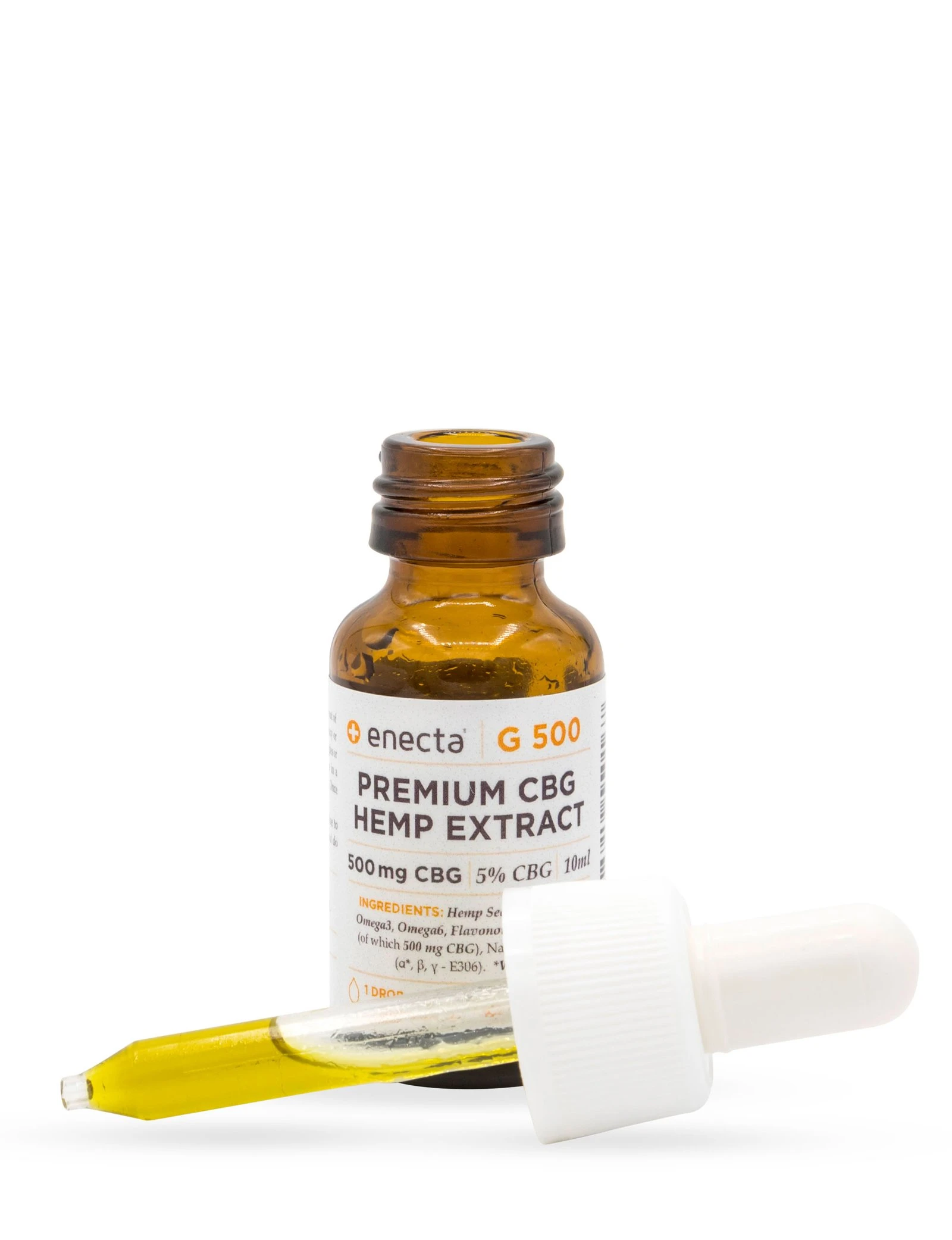 L’olio di CBG di Enecta è disponibile nella versione da 10 ml contenente 500 mg di CBG.
