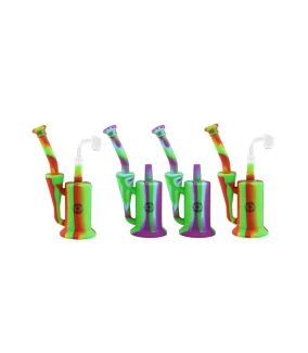 Silikonbong mit doppeltem Glasgefäß zur Verwendung mit Kräutern und Extrakten; eine einzigartig gestaltete Bong, die leicht zu reinigen und stoßfest ist.