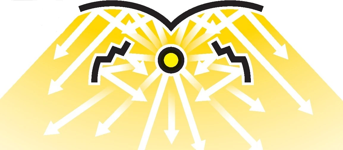 Das einzigartige Profil des Reflektors ist so konzipiert, dass die von der Lampe abgegebene Wärme abgeleitet und die Beleuchtungsstärke an den Seiten der Lampe erhöht wird, wodurch eine gleichmäßige Ausleuchtung und eine Reduzierung der Wärme gewährleistet wird.
