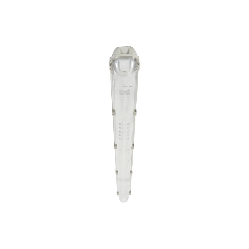 Polycarbonate ceiling light Single version, 1500mm Type of protection IP65 The luminous flux and light colour vary depending on the LED tubes used Easy to install with stainless steel fixing brackets included for ceiling mounting Ideal for any industrial facility, garages, car parks, workshops.
