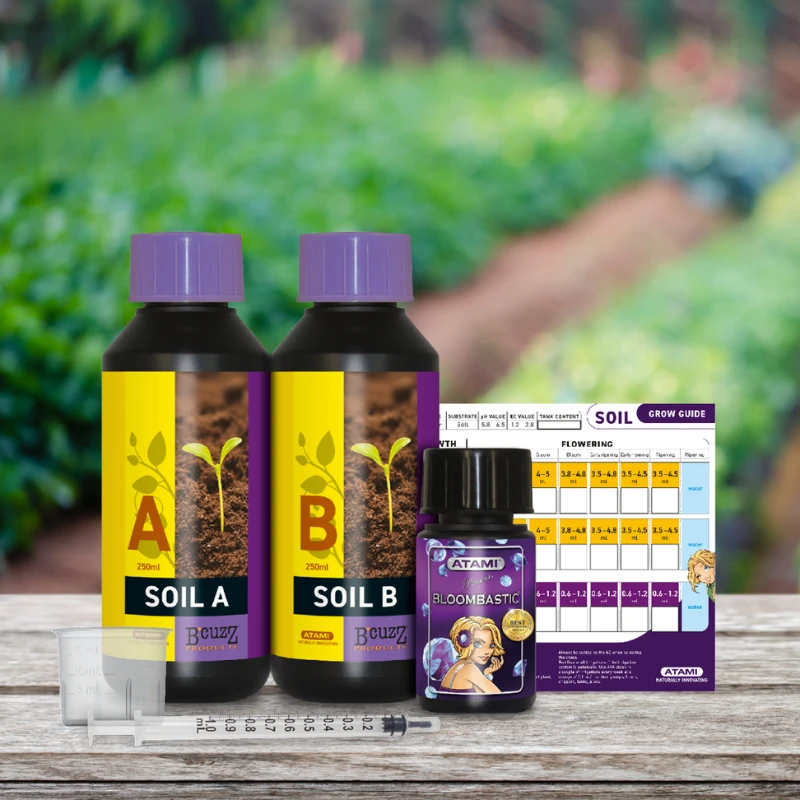 Este kit contiene los nutrientes minerales básicos B 'cuzz Soil A & B y el aditivo de floración todo en uno Bloombastic. Perfecto para cultivadores en tierra o en maceta que desean resultados profesionales incluso en pequeñas plantas caseras.
