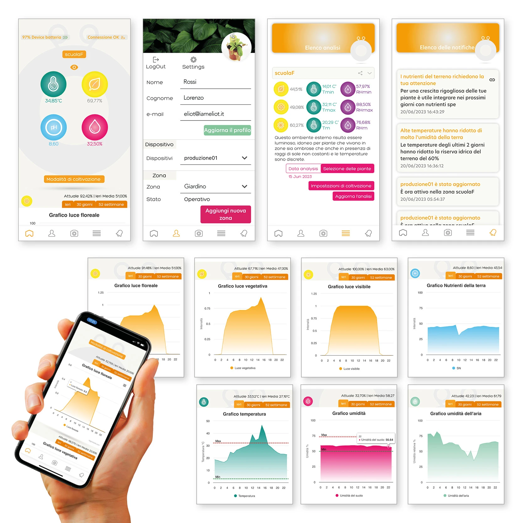 • Recibe notificaciones puntuales y previsiones sobre el cuidado de las plantas.