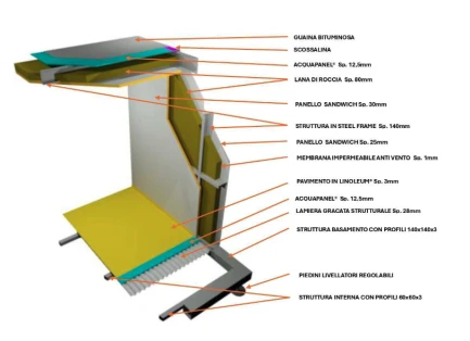- Structure portante avec profilés en acier galvanisé de 140 mm d'épaisseur, ossature en acier léger
