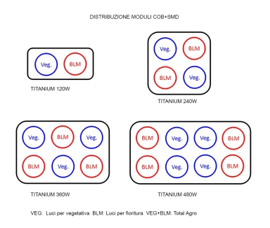 The TTS series lamps are made with modules consisting of 1 AGROCOB + 6 smd leds. These modules are only made with EPILED® Cob, smd CREE® and UL® drivers.