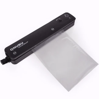 La envasadora al vacío QNUBU VAC está diseñada para envasar al vacío distintos tipos de productos. Incorpora dos funciones: sellado automático al vacío y con calor o sólo sellado. Con sólo pulsar un botón, podrá sellar bolsas de vacío y conservar sus productos durante más tiempo con facilidad. La solución ideal para el envasado doméstico.