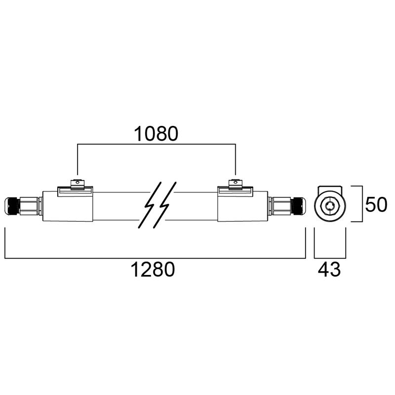 • 1280 mm x 43 mm x 50 mm,