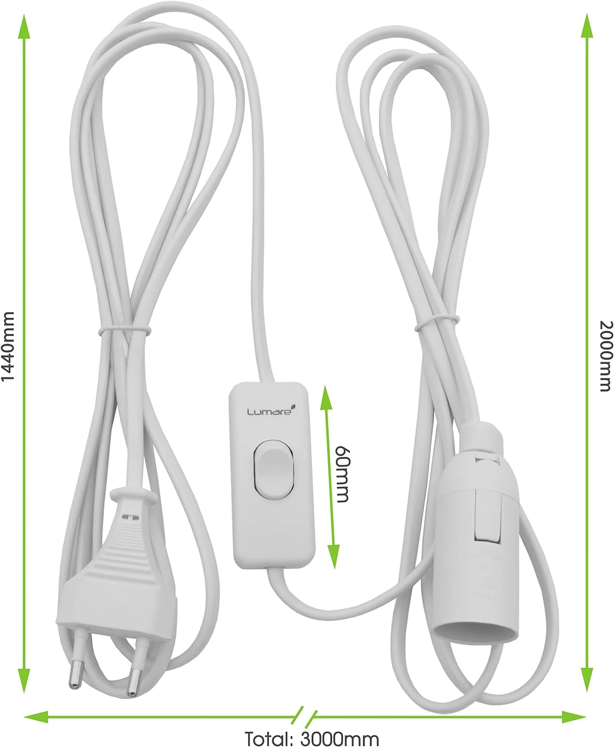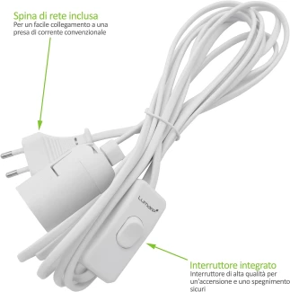 Support de lampe E27 avec prise et interrupteur, câble de 3,5 mètres.Puissance max. 40WConvient pour les lampes fluorescentes compactes et les lampes LED.
