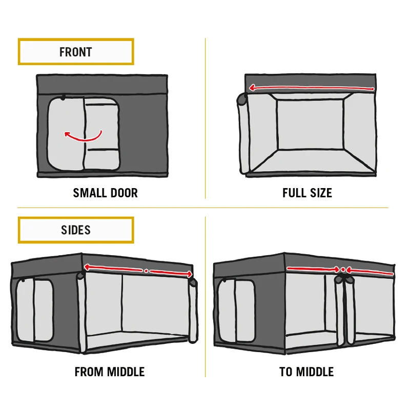 • I quattro lati di Intense possono essere collegati fra di loro (480 con 480 e 600 con 600), permettendo di creare delle growbox personalizzate. Unendo le cerniere verticali e orizzontali si ottiene uno spazio impenetrabile ad aria e di luce.