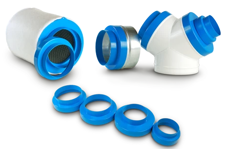 Permet de raccorder les filtres à des aspirateurs et à des tuyaux de différents diamètres.
