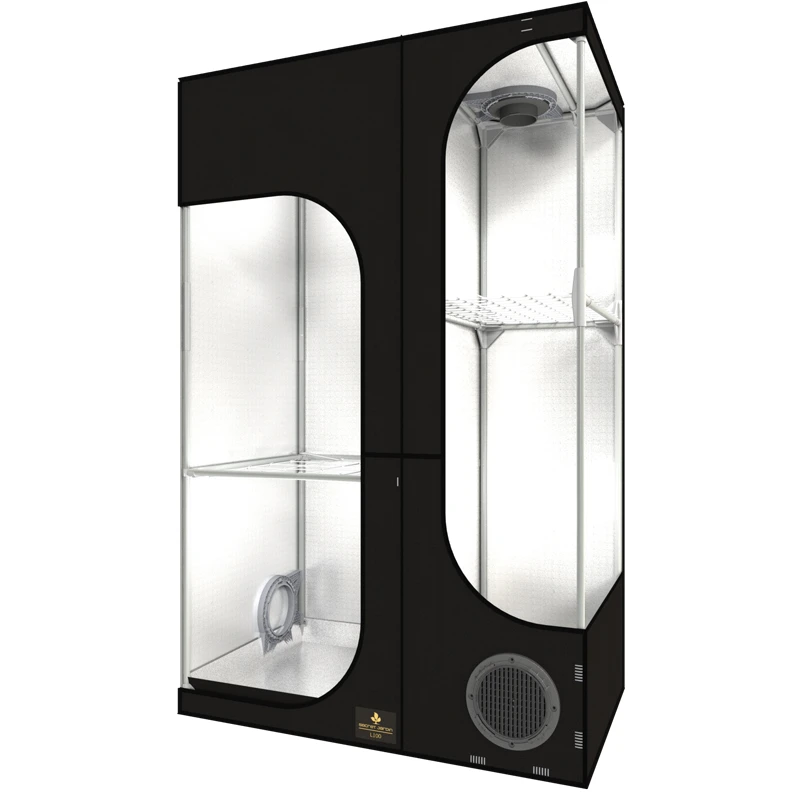 El Lodge 4.0 ofrece todas las ventajas de la gama Dark Street, pero gracias a su diseño también ofrece una zona de propagación adicional para el cultivo de esquejes y plantas madre.