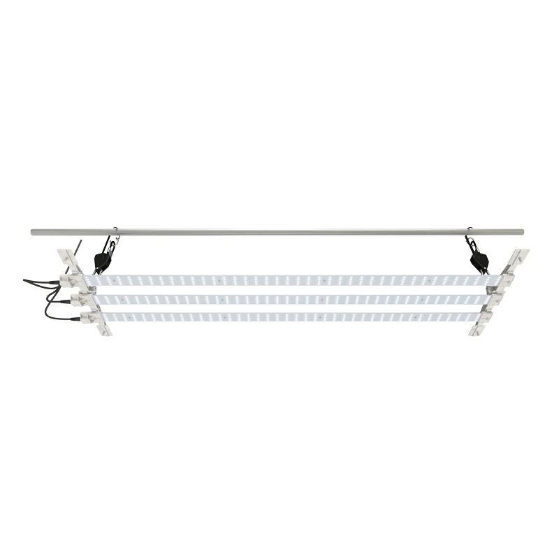 to grow areas of 40x120cm or 60x120cm by changing the position of the LED strips on the hook. The included power supply and suspension clips allow you to upgrade the kit to 120W by adding a third Cosmorow COP4065.