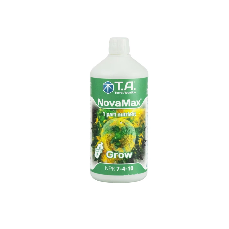 NovaMax Grow est un engrais organo-minéral qui sera utilisé pendant la période de croissance des plantes cultivées en terre, en hydroponie et en substrat de fibre de coco. Cet engrais de culture Terra Aquatica hautement concentré assurera une croissance saine et magnifique à vos cultures d'intérieur et d'extérieur en éliminant le besoin de calcium, de magnésium et d'oligo-éléments. NPK : 7-4-10.