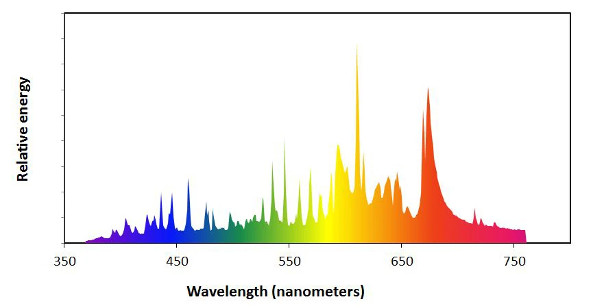 Spettro di emissione completo ideale per promuovere i processi di sviluppo dei vegetali durante tutte le fasi di crescita della pianta. Ricco di Far red per favorire la fase di fioritura.