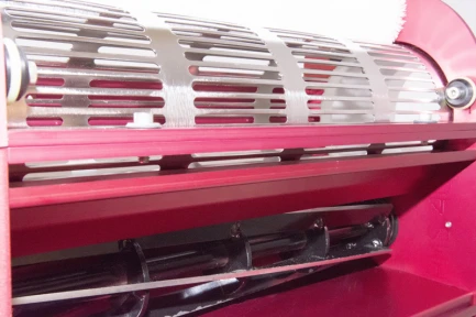 - Leicht zu reinigen. Die gesamte Maschine, mit Ausnahme des rotierenden Zylinders, kann mit einem Hochdruckreiniger gereinigt werden.