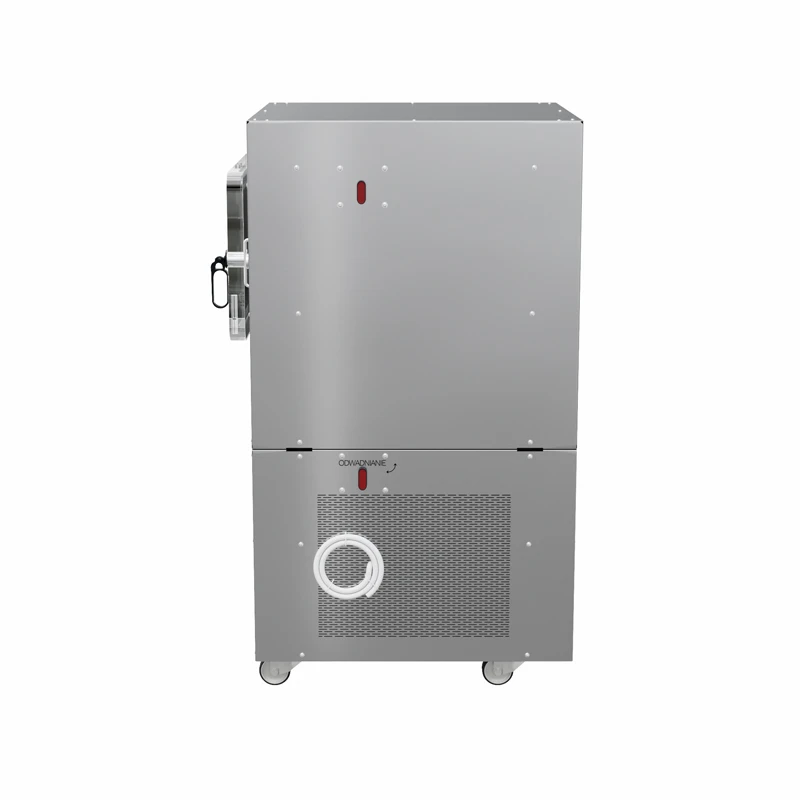 • Aufbau: Solides Gehäuse mit den Maßen 130 x 73 × 72 cm auf Rädern, die ein leichtes Verschieben der Maschine ermöglichen. Der konstante Regalabstand von 3 cm garantiert gleichmäßige Bedingungen auf allen Ebenen und sichert den korrekten Betrieb der Maschine.