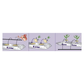 Das Gro-Slab kann für den Anbau in Libra-Töpfen oder mit Trays mit zeitgesteuerten Tropfsystemen verwendet werden. Für den hydroponischen Anbau verbessert es die Sauberkeit der hydraulischen Komponenten und der Nährstofflösungen. Es kann bis zu 5 - 6 Pflanzen aufnehmen.