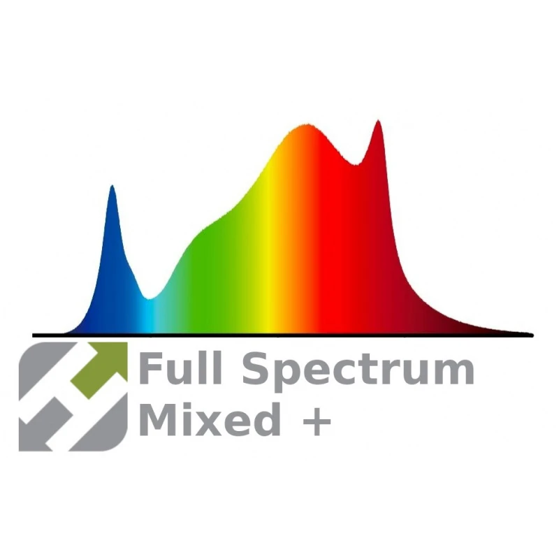 Die Hortimol MG8 LED hat ein speziell verteiltes Vollspektrum, das auf die wichtigsten Photorezeptoren und Pigmente außerhalb des Bereichs von 660 nm und 450 nm wirkt und für den Innenanbau geeignet ist.