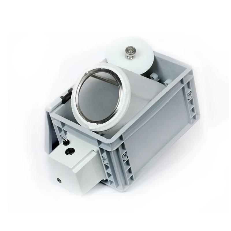 Die Drehzahl der Trommel ist von ca. 8 bis 35 U/min (in 7 Stufen) einstellbar und die Drehrichtung kann durch Umstecken des Steckers geändert werden. Die Standardmaschengröße beträgt 150μm.