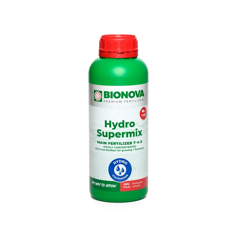 Bionova's Hydro Supermix is an all-in-one food-grademineral fertiliser developed specifically for hydroponic systems. The nutrients needed for growth and flowering are combined in a single solution, making it very easy to grow. This combination contains all the minerals and trace elements required for rapid growth and abundant flowering. The plants directly absorb all the nutritional minerals, ensuring optimum crop control.