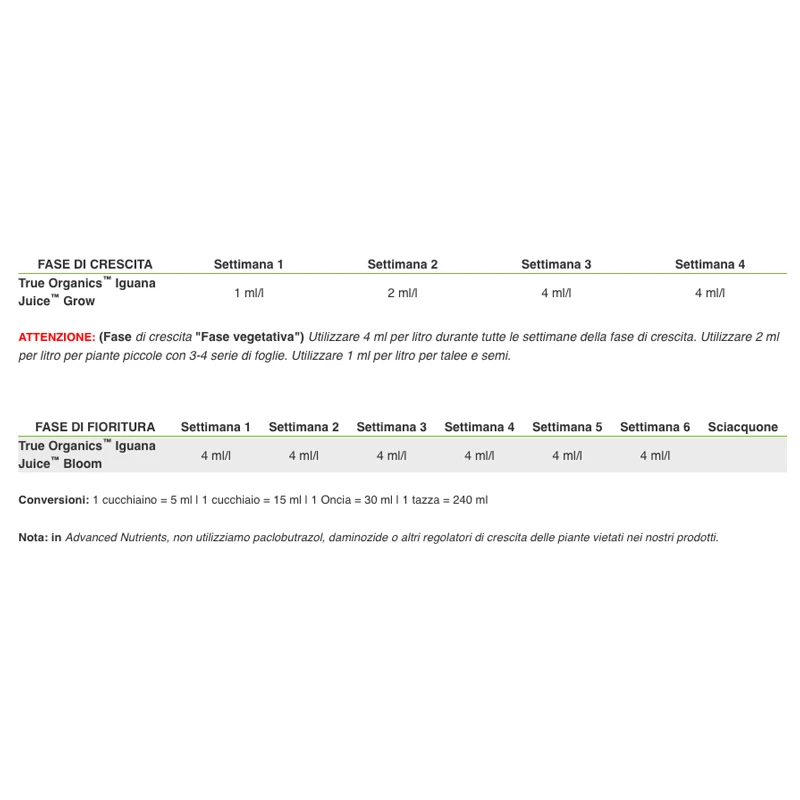 • True Organics Iguana Juice Grow contiene los elementos esenciales en las proporciones y concentraciones necesarias para un enraizamiento fuerte y un crecimiento vegetativo vibrante.
