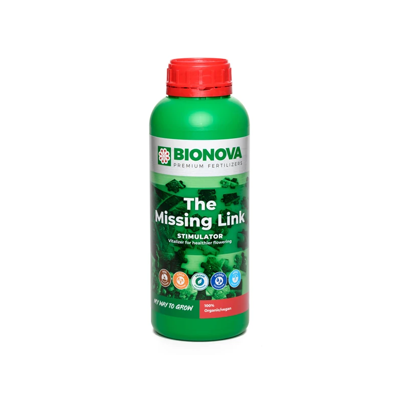 Le Chaînon manquant est un stimulant 100% certifié biologique/végétalien. La combinaison du meilleur acide fulvique au monde et de l'argent colloïdal crée un système immunitaire imbattable. Un système immunitaire fort réduit considérablement les facteurs de stress. De cette manière, les plantes peuvent atteindre leur force maximale au moment de la récolte, en poussant de manière compacte et vigoureuse, et l'utilisation de pesticides/fongicides peut être réduite. Un produit exclusif de Bionova pour des plantes super vertes !