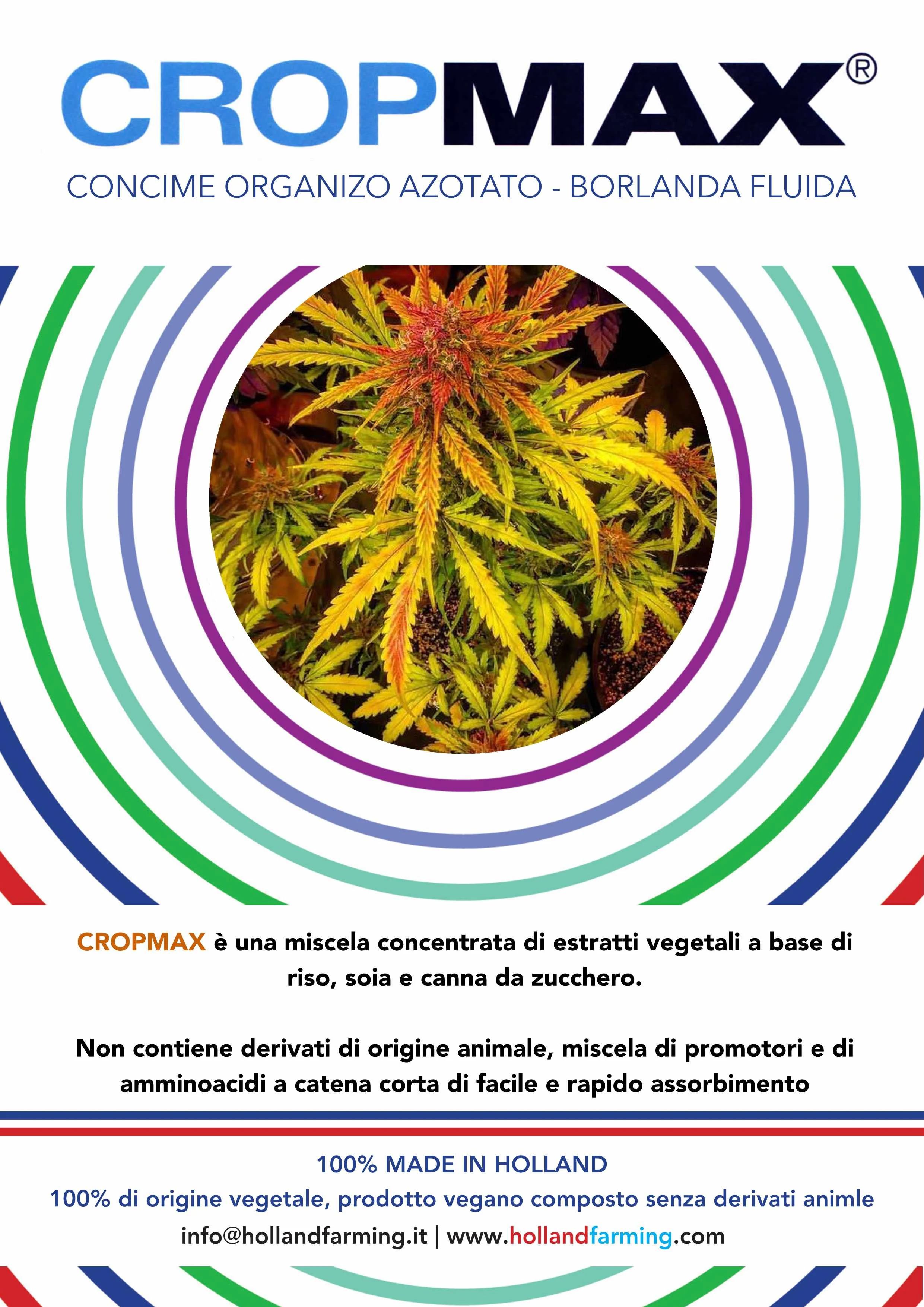Cropmax est un engrais foliaire ultra-concentré contenant des stimulateurs de croissance, des vitamines d'origine végétale, des polysaccharides, des enzymes et des macro et micro-éléments. En raison de sa forte concentration, la dose d'engrais utilisée est de 0,5 à 1 litre pour 1 hectare ou 5 ml de produit par litre d' eau.