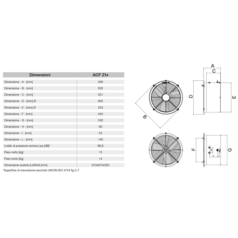 E912238611 - ACF18 DESTRATIFICADOR Y CIRCULADOR DE AIRE DIAMETRO 459MM - 18" 230V - 3180MC/H ACERO GALVANIZADO