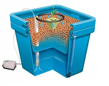 Ambos sistemas funcionan utilizando aire para atraer los nutrientes del depósito y dejarlos gotear de nuevo a través de la arcilla expandida y las raíces. Este diseño sencillo y fiable es increíblemente eficaz a la hora de suministrar una solución nutritiva perfectamente oxigenada a las plantas, exactamente lo que necesitan para un crecimiento y una floración óptimos, y el sistema de 2 partes le permite acceder fácilmente a la cisterna y al sistema radicular, lo que puede resultar difícil en muchos sistemas.
