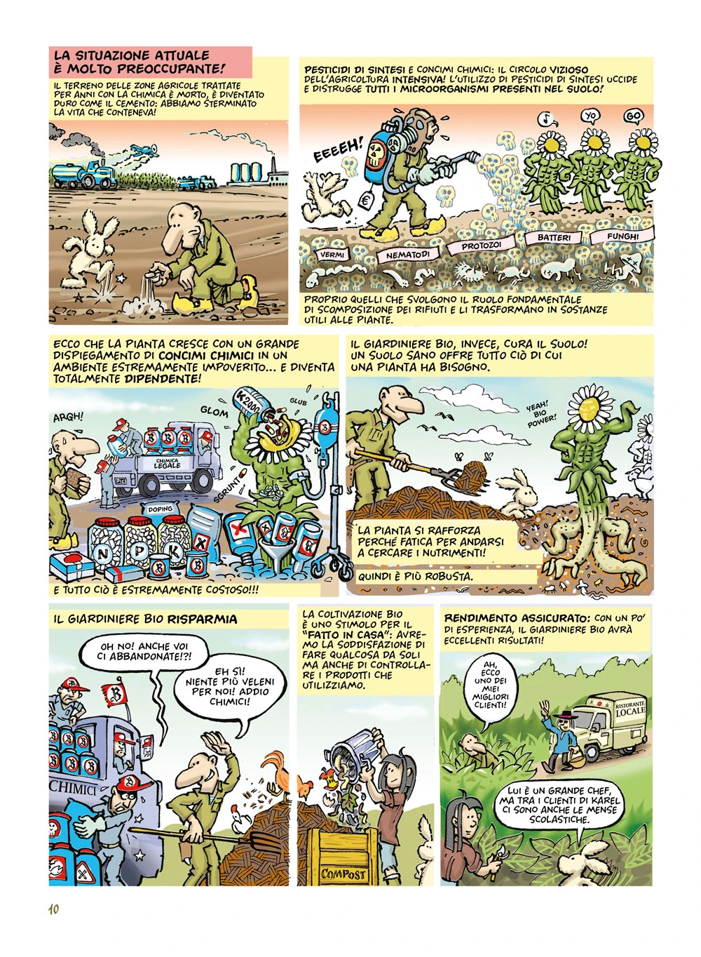 Gracias a Coltivare Bio a fumetti, de Mama Publishing, aprenderás todo sobre el humus, las semillas, los insectos útiles y las prácticas que son buenas tanto para las plantas como para el planeta y ayudan a cultivar frutas y verduras sanas y sabrosas. Y también hermosas flores.