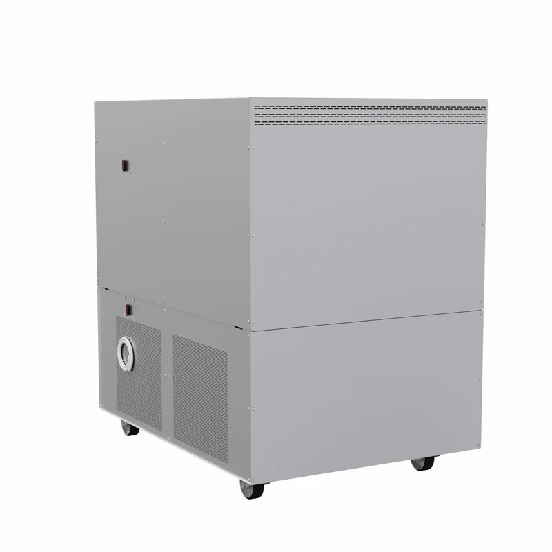 - Structure : boîtier solide de 156 × 110 × 148 cm sur roulettes, permettant un déplacement aisé de la machine. L'espacement constant des étagères de 6,5 cm garantit des conditions uniformes à tous les niveaux, ce qui assure le bon fonctionnement de la machine.