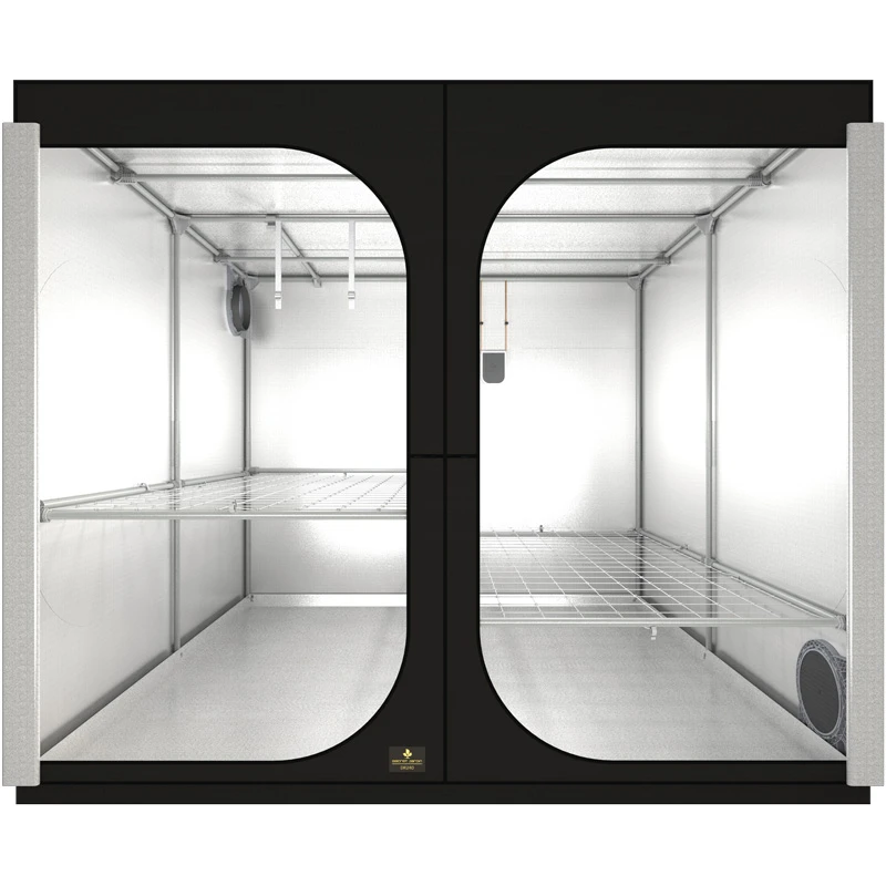 La Secret Jardin Dark Room DR300 R 4.0 est une tente de culture professionnelle de haute qualité. La DR300 est entièrement équipée de 400D Mylar à l'intérieur. Le Mylar utilisé reflète encore plus la lumière que celui utilisé dans la série Hobby, a une grande résistance à la déchirure, est résistant à la chaleur, à l'huile, à la graisse et à l'humidité, et peut être lavé à la machine.