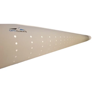 Les tuyaux de distribution d'air en tissu Opticlimate sont fabriqués dans un matériau respirant dans lequel très peu d'air s'échappe, de sorte qu'aucune condensation ne se forme au bas du tuyau. Ces tuyaux sont utilisés dans des applications professionnelles où les gouttes de condensation ne sont pas les bienvenues en raison de la formation de gouttes ou de moisissures. Le tuyau a des trous prépercés selon un schéma calculé de sorte que la sortie d'air est parallèle du bas vers le côté du tuyau.