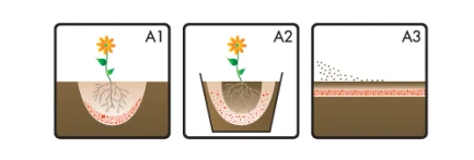Dans les jardins, étaler le produit dans le trou de plantation pour former une couche d'environ 1 cm au fond.