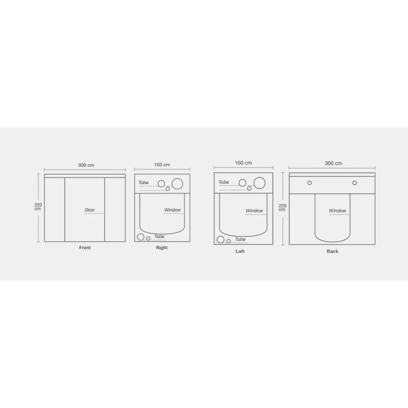 • Dimensiones del armario de cultivo completamente montado: 150 x 80 x 200 cm