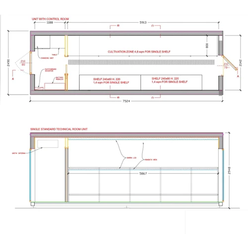 - Superficie netta di coltivazione talee in 2 stadi: 5.70m2 su 2 livelli