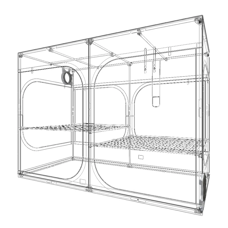 - Accesso a 360° alla grow room grazie alle porte anteriori e ai pannelli laterali sui lati e sul retro;