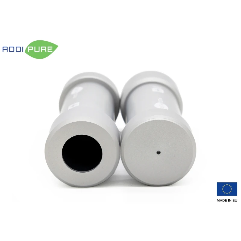 ADDIPURE Extraktoren werden aus lebensmittelechtem Aluminium mit eloxierter Oberfläche hergestellt. Die farblose Schicht des eloxierten Aluminiums erhöht die Härte der Oberfläche und reduziert die Reibungskoeffizienten bei Ihren Extraktionen.