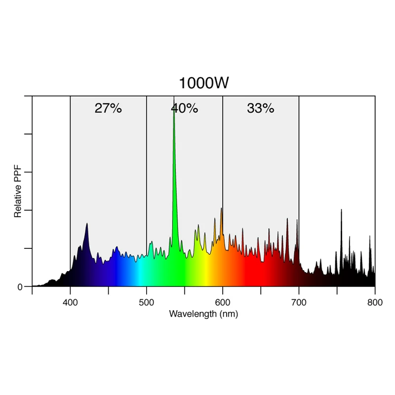 • Zweiseitig gesockelte Halogen-Metalldampflampe 1000W MH-Lampe mit extremer Effizienz von 1,8 µmol/W (1.800 µmol/s bei 1000 Watt)