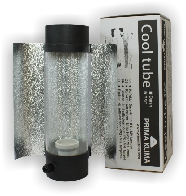 Réflecteur cylindrique en verre Pyrex pour refroidir la chaleur produite par la lampe. Le Cooltube est relié à un aspirateur de même diamètre par un conduit en Alufex. Le passage de l'air dissipe une grande partie de la chaleur produite par l'ampoule, ce qui permet à la lumière de s'approcher le plus possible des parties apicales, augmentant ainsi l'intensité lumineuse sur les plantes.