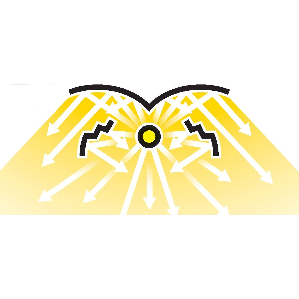 The unique profile of the reflector is designed to dissipate the heat emitted by the lamp and increase the illuminance at the sides of the lamp, thus ensuring uniformity of illumination and heat reduction.