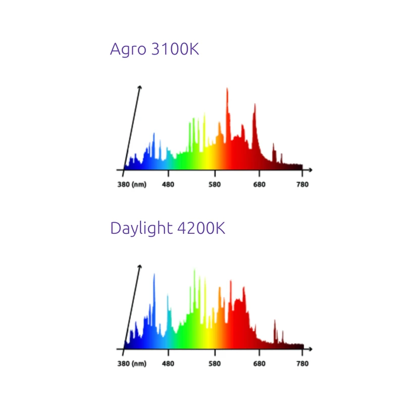 • CCT (K) : 3100K (Agro) ou 4200K (lumière du jour)