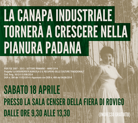 sabato 18 aprile si svolgerà a Rovigo un'interessante convegno sul futuro della coltivazione della canapa per scopi industriali.