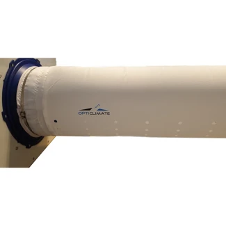 Los tubos de distribución de aire de tejido Opticlimate están fabricados con un material transpirable en el que se escapa muy poco aire, por lo que no se forma condensación en la parte inferior del tubo. Estos tubos se utilizan en aplicaciones profesionales en las que los goteos de condensación no son bienvenidos debido al goteo o a la formación de moho. El tubo tiene orificios pretaladrados en un patrón calculado para que la salida de aire sea paralela desde la parte inferior hasta el lateral del tubo.