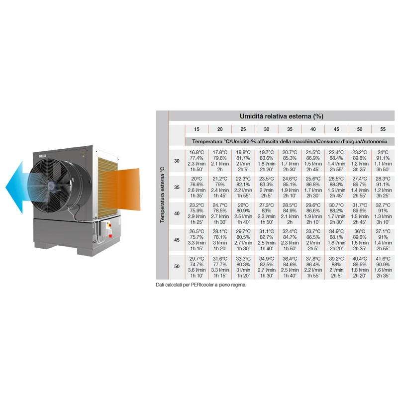 The PERICOOLER adiabatic cooler is an extremely versatile machine that can cool a large volume of air efficiently and economically. It can be used both in fixed installations and in temporary situations where there is a need to climatically control a specific area.