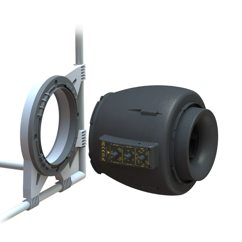 Le nouvel extracteur hélicoïdal DF16E350 de Secret Jardin est câblé et prêt à l'emploi, la vitesse est réglable via le panneau de commande et garantit un flux d'air puissant et silencieux.