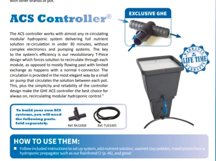 - Es posible adaptar el controlador "ACS" a todo tipo de sistemas, ya sean de GHE, de otros fabricantes o de fabricación propia. Si desea ampliar sus instalaciones, dispone de tuberías y conectores.