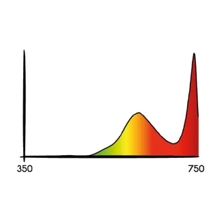 El Cosmorrow LED IR incluye un 33% de infrarrojo cercano (730 nm) y un 66% de LED 2100K (blanco cálido). Destinado a la floración y la fructificación, también actúa como un calentador radiante y anima a las plantas que buscan el sol a estirarse.