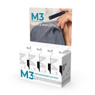 Il design a forma di penna rende la batteria M3 comoda per il trasporto. Il suo alloggiamento è in acciaio inossidabile e la ricarica avviene tramite il connettore 510/USB in dotazione. Attivazione della resistenza tramite inalazione, impostazione della temperatura ottimale auto-adattiva e design senza pulsanti rendono M3 perfette per ogni cartuccia e di facile utilizzo.